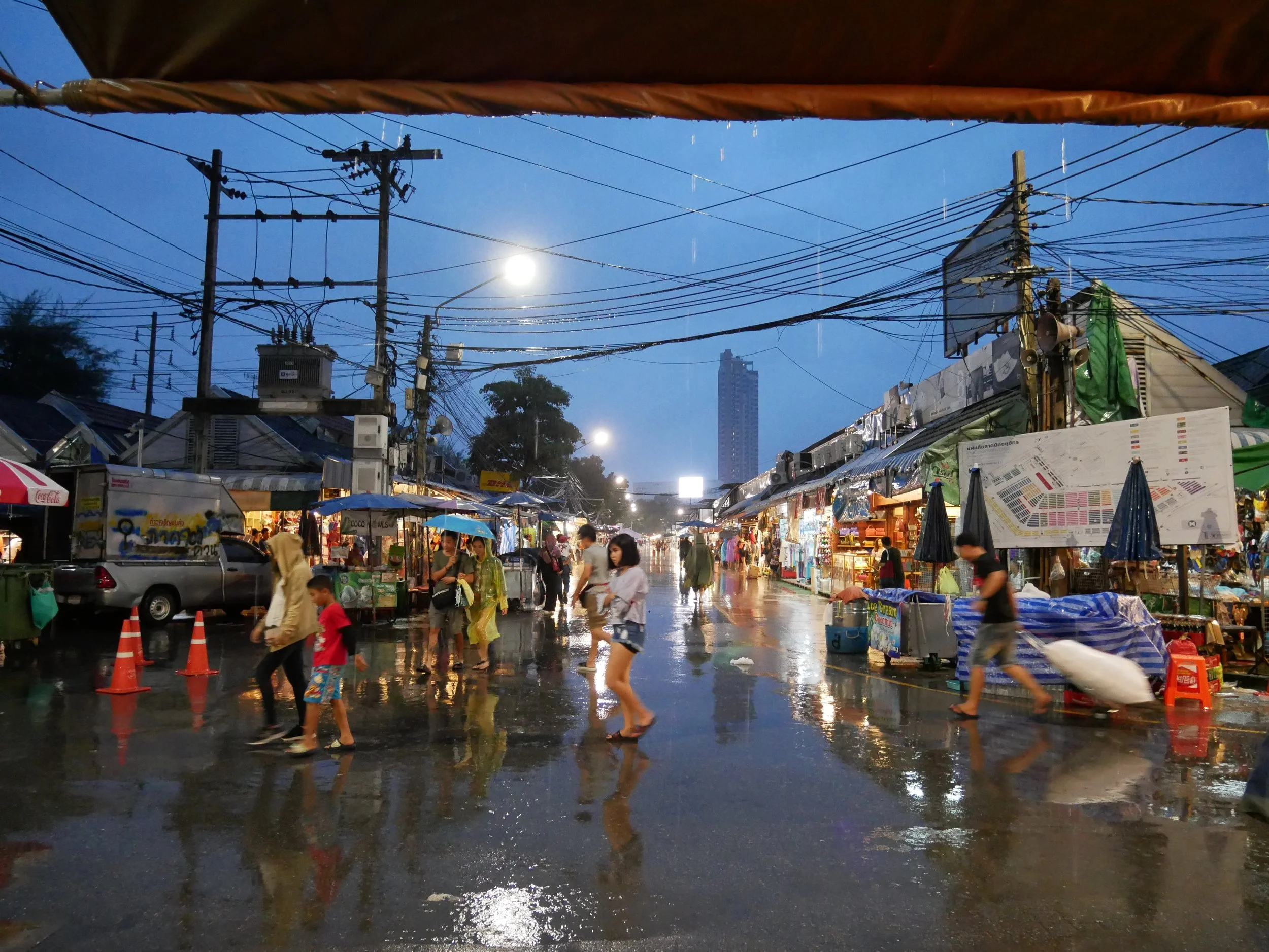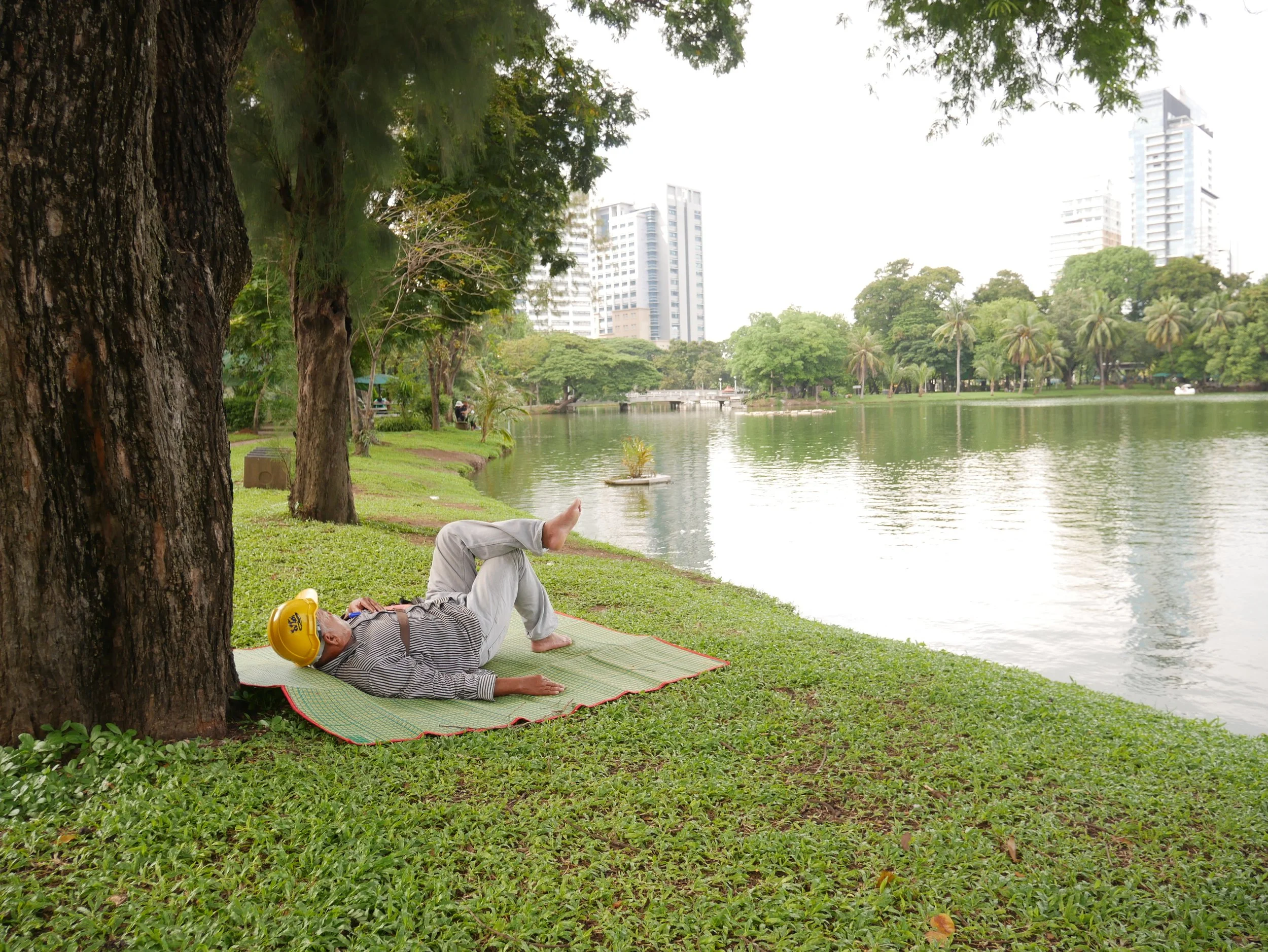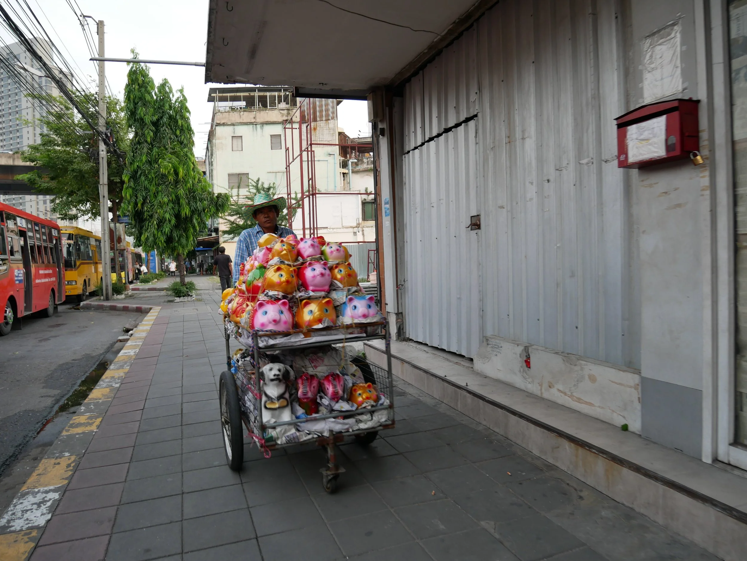 My wife and I have a history of doing things the hard way. This often goes together with our inherent frugality. We traveled to Bangkok on summer vacation from our teaching jobs in Chiang Mai, Thailand. We explored the center city at length. When we were ready to head back to our room, we mistakingly tried to catch a cab near the bus station. After trying to negotiate down the initial price-gouge cab rate and failing, we decided to walk what turned out to be the six miles back to our place. We made a day of it. We passed through neighborhoods you won’t find in any guidebook, ran from dogs, met nice folks, explored alleys that turned into homes, and made these photos along the way.